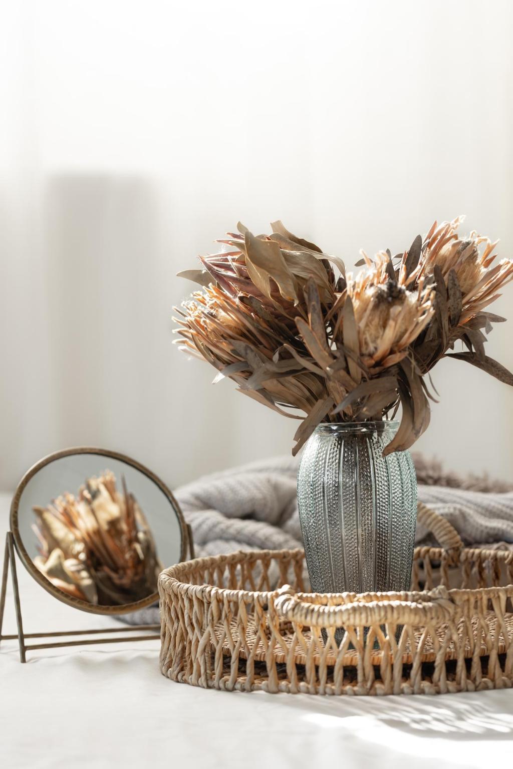 Setze auf Jute-Teppiche, Kork-Untersetzer, gewebte Wandhänger und getrocknete Gräser in wiederverwendbaren Vasen. Warme, organische Oberflächen beruhigen den Blick. Teile dein Lieblingsarrangement in den Kommentaren und inspiriere andere mit deinem nachhaltigen Stil.